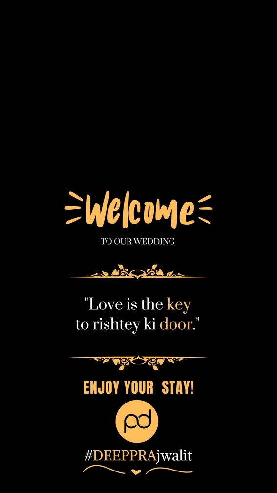 A polished 5.5-inch welcome room hanger designed to greet wedding guests with warmth and style. Printed on high-quality rigid cardstock with a luxe black-and-gold palette, it features a bold “Welcome” header, ornate filigree accents and the charming message: “Love is the key to rishtey ki door.” Ideal for hotel rooms, welcome baskets, or doorway décor, each hanger protects finishes and doubles as a memorable keepsake; available for add-on personalization and bulk orders to coordinate with your wedding theme.