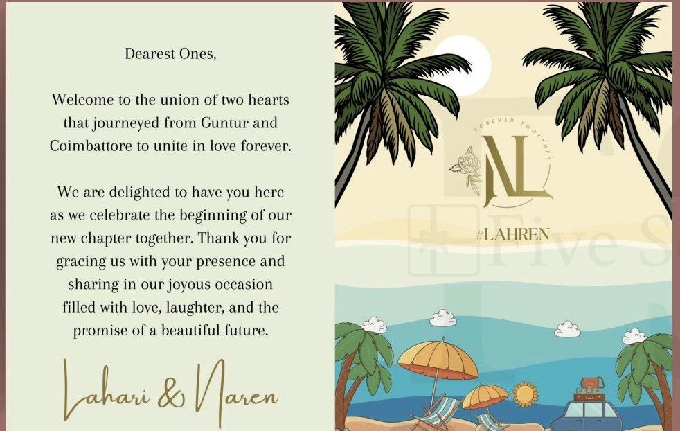 Elevate your wedding weekend with our elegant One-Fold Itinerary Cards, perfect for destination celebrations. Featuring a tropical beach theme with palm trees, sun, and serene seaside motifs, the front welcomes guests with heartfelt messages like 'Dearest Ones,' couple's names such as Suri & Naren, and custom monograms. The back details the full schedule—check-in at 11 AM, brunch at 7:30 AM on 25 Nov 2024, lunch from 2 PM onwards—with times, locations like Bengal Beach Resort, and icons for meals, transport, and resorts. Crafted for customization in colors, designs, and details on premium cardstock, these single-fold cards ensure guests stay informed and immersed in your love story, creating cherished keepsakes.